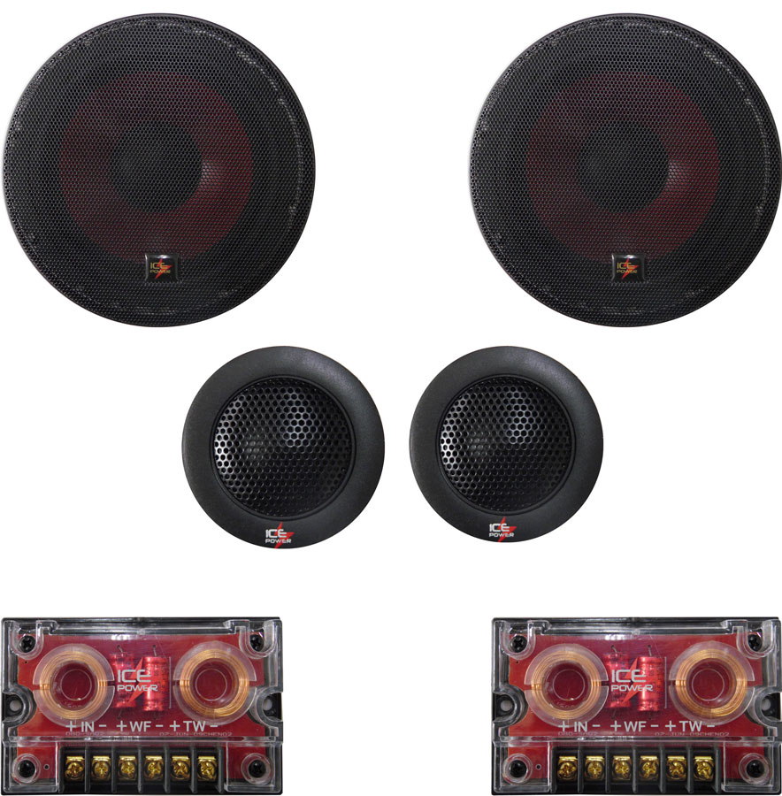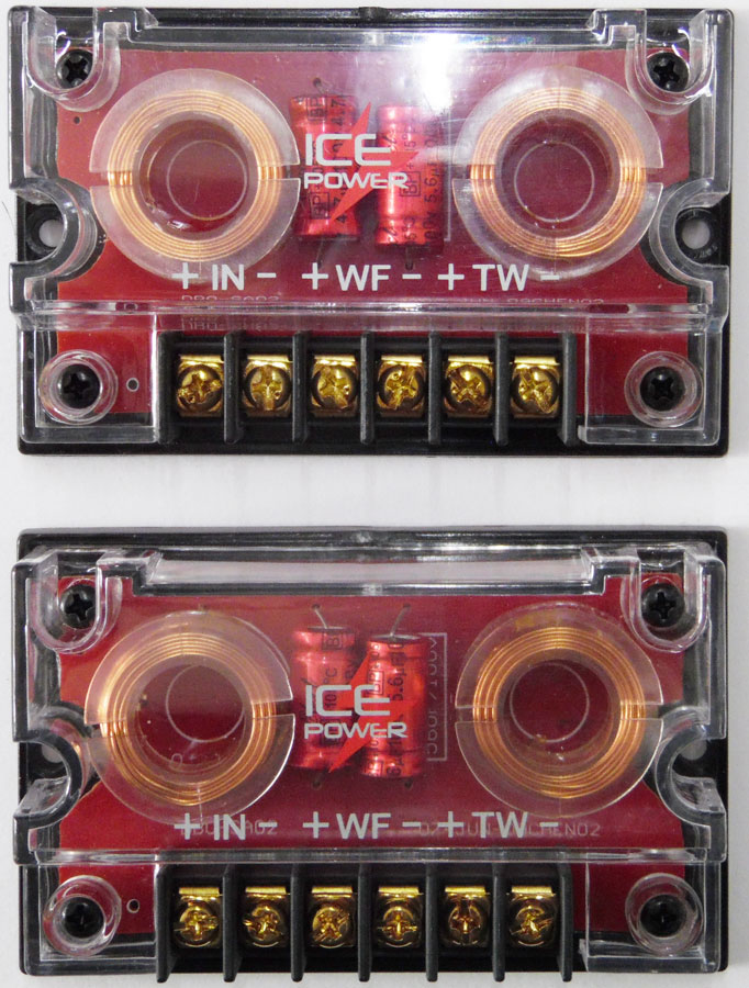 Sistema audio a 2 vie per impianti audio composto da: 2 woofer, 2 tweeter e 2 filtri crossover a 2 vie.