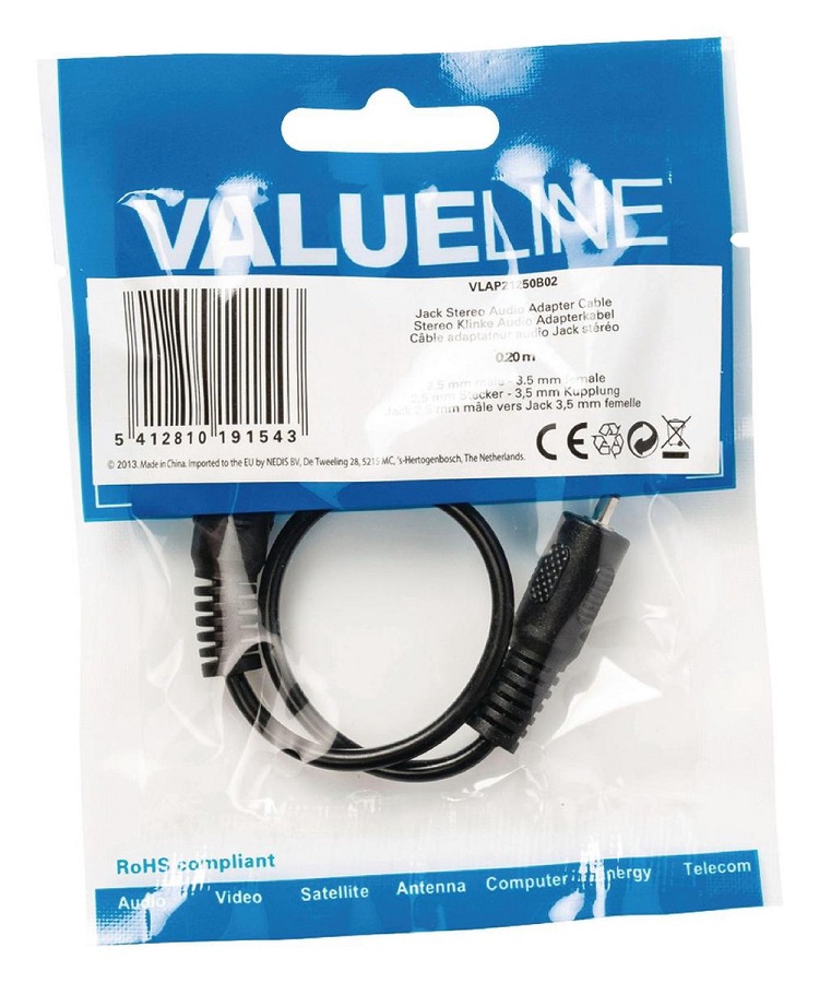 Cavo adattatore jack audio maschio 2.5mm - femmina 3.5mm