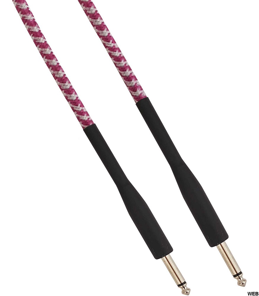 Cavo lineare mono telato con connettori Jack per strumenti musicali e apparecchiature audio.