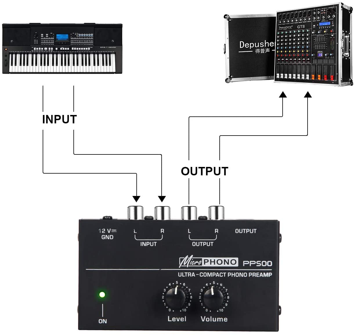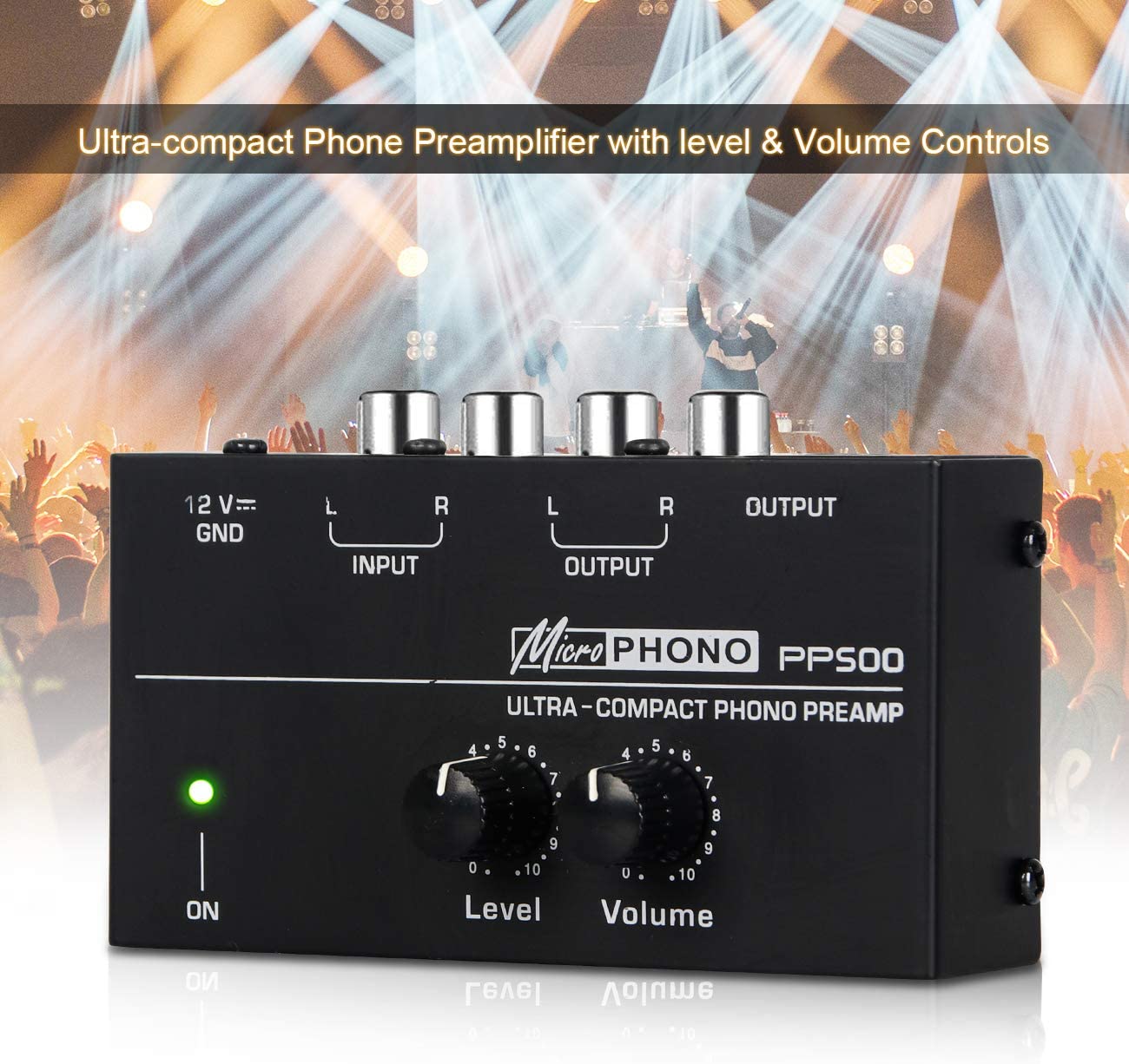 microPHONO PP500 preamplificatore ultracompatto con controlli di livello e volume