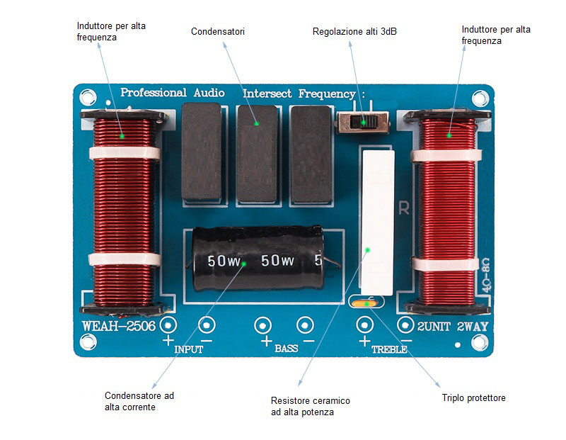 Filtro crossover 2 vie 300W 4~8 Ohm WEAH 2506A