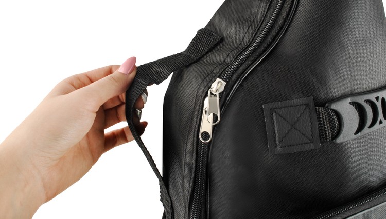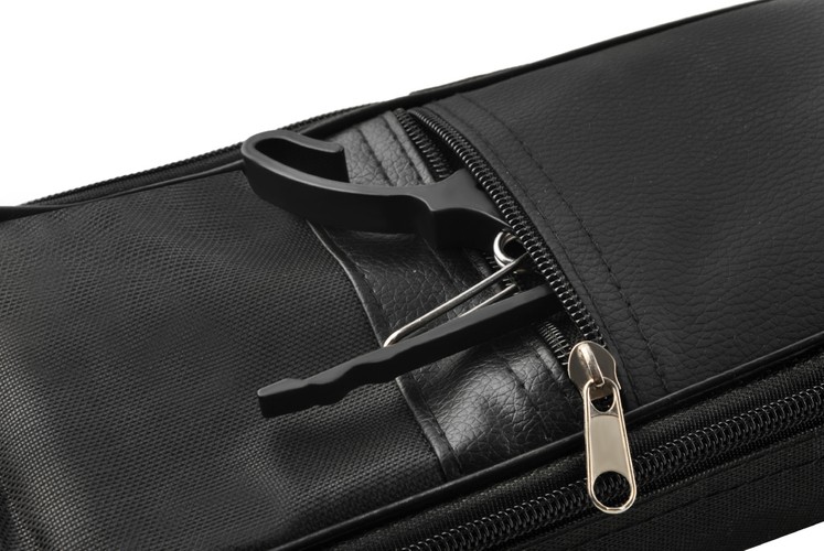 TASCHE - è dotata di 2 tasche, quella superiore consente di riporre accessori più piccoli, come un capotasto o plettri, mentre la tasca inferiore consente di riporre un formato A4, in modo da poterci mettere facilmente spartiti e altri piccoli oggetti.