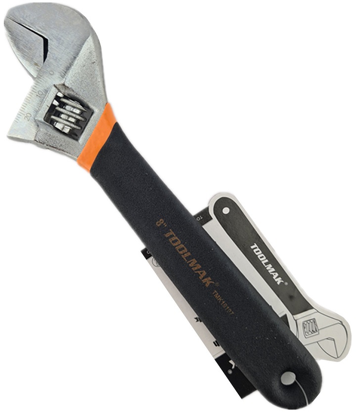 Chiave inglese regolabile da 8 pollici TOOLMAK, progettata per offrire robustezza, precisione e comfort. Realizzata in acciaio al carbonio 45# forgiato, con impugnatura rivestita antiscivolo e struttura a trave centrale per un utilizzo affidabile e duraturo.