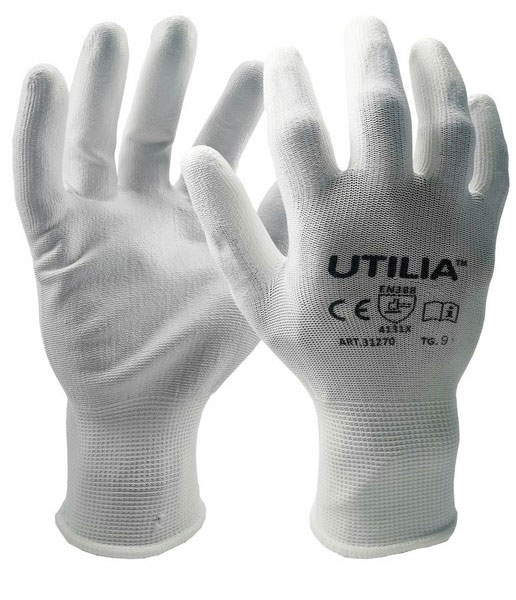 Guanti da lavoro in poliuretano bianchi taglia 9 Utilia
