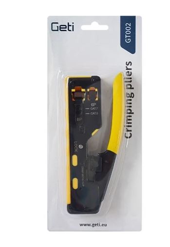 La pinza crimpatrice GETI GT002 è uno strumento compatto e robusto progettato per la crimpatura rapida e precisa di connettori modulari RJ. È ideale per installazioni di rete, cablaggi telefonici e lavori di manutenzione, risultando perfetta sia per tecnici che per hobbisti.