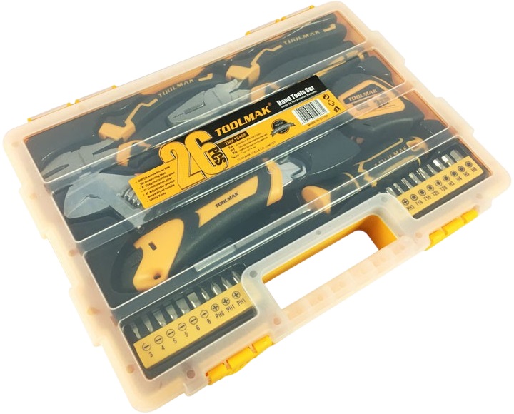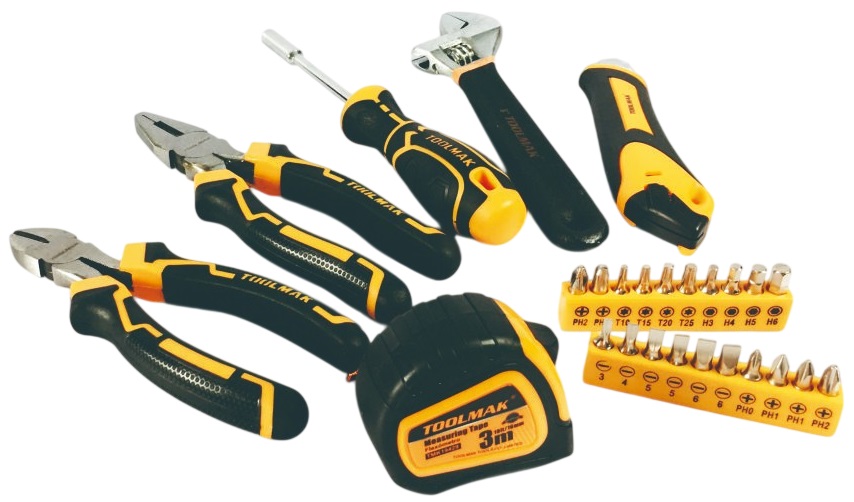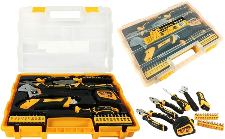 Set utensili TOOLMAK pensato per affrontare piccole riparazioni domestiche e lavori di fai da te con praticità e ordine. Gli utensili sono realizzati in acciaio di qualità con finitura lucida cromata, studiata per offrire buona resistenza, durata e protezione dalla corrosione. Il tutto è contenuto in una pratica valigetta rigida sagomata, utile per trasporto, organizzazione e conservazione degli utensili.