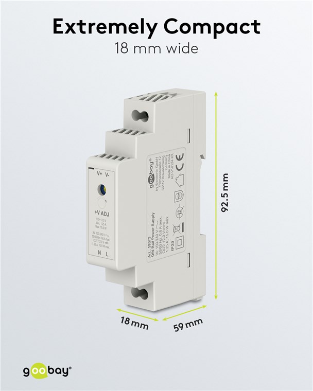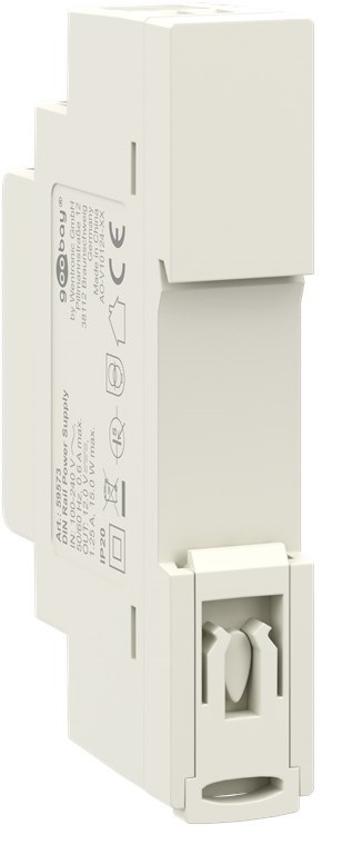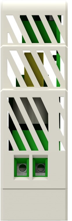 - Con una larghezza di 18 mm, è particolarmente compatto e può essere montato rapidamente e facilmente su una guida a cappello, ad es. in un quadro elettrico, mediante un sistema a scatto.