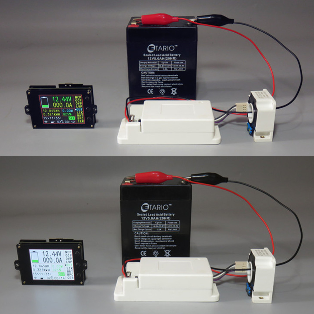 Misurazione di tensione, corrente, potenza, capacità, percentuale di capacità residua della batteria.