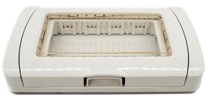 Copertura idrobox realizzata in materiale termoplastico, con grado di impermeabilità IP55.