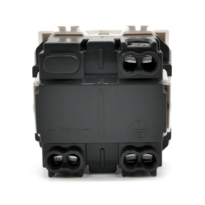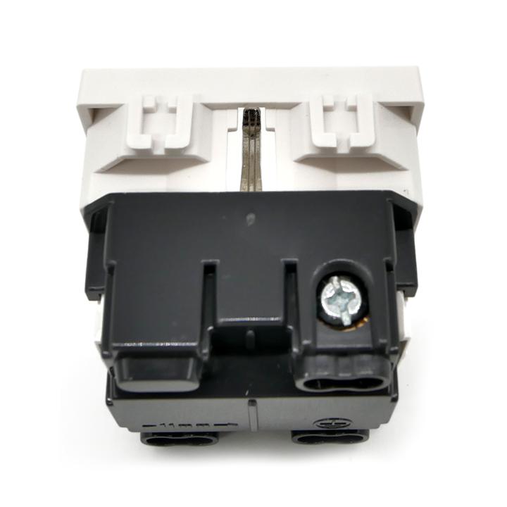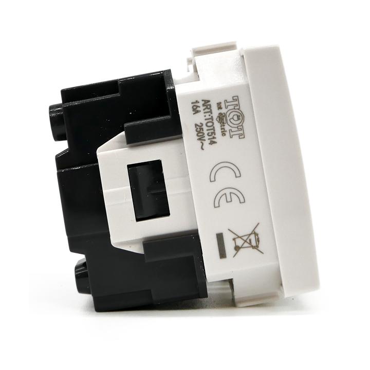 Ha un valore di assorbimento nominale di 16A e occupa lo spazio di due frutti nella scatola.