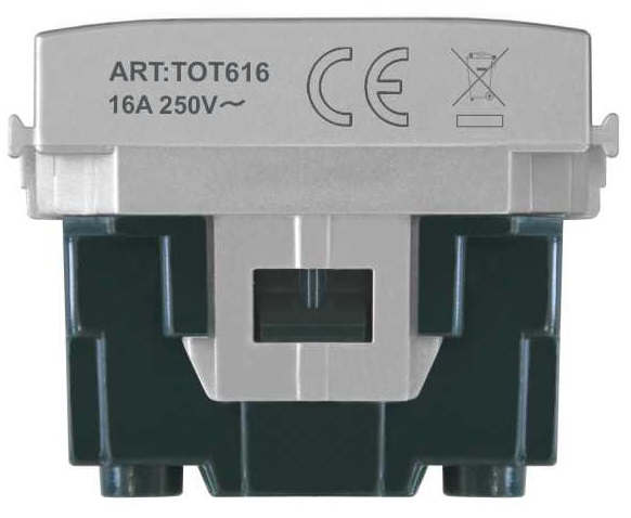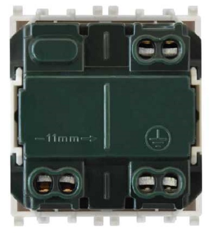 La spina schuko ha un valore di assorbimento nominale di 16A e occupa lo spazio di due frutti nella scatola.