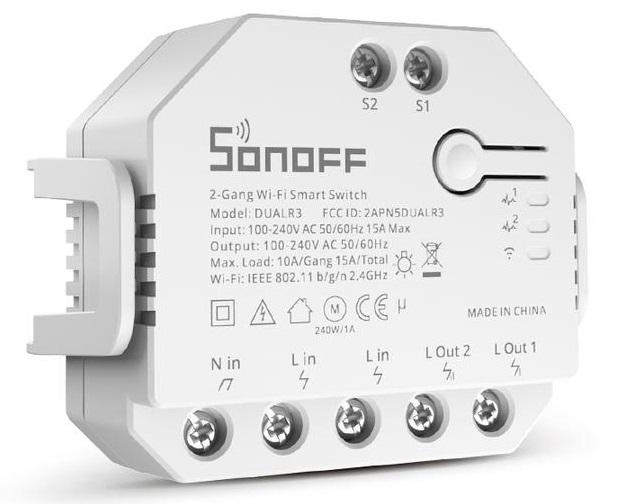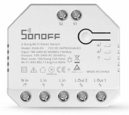 Interruttore smart wireless 2 contatti 100-240V 10-15A Sonoff DIY-DUALR3