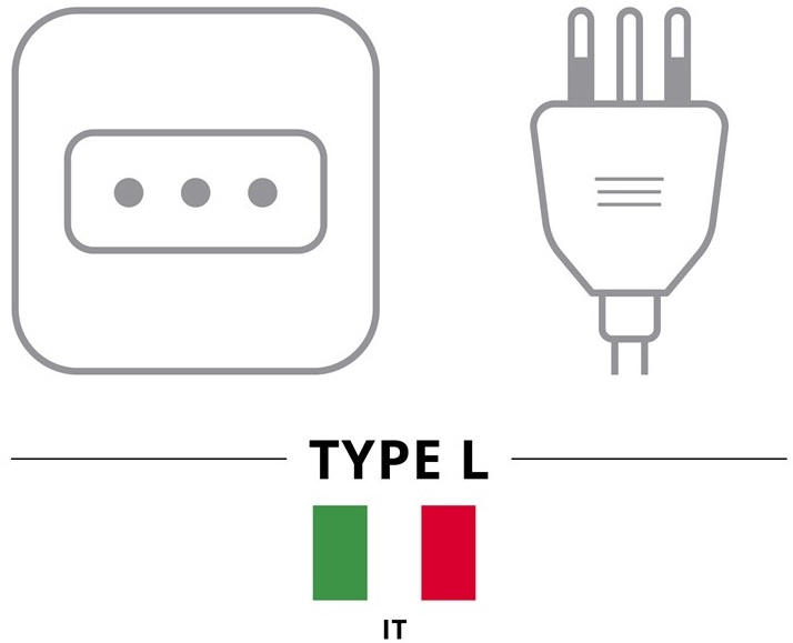 - Collegamento, tipo Spina italia (tipo L, CEI 23-16-VII)
