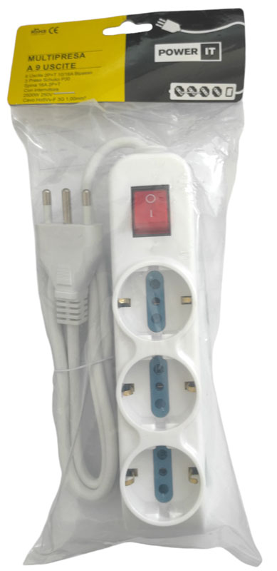 Multipresa 9 posizioni con 3 schuko e 6 bipasso con interruttore