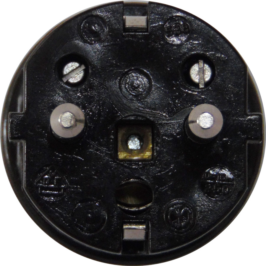 Spina di rete schuko con doppio sistema di terra con spinotti dal diametri di 4.8mm.