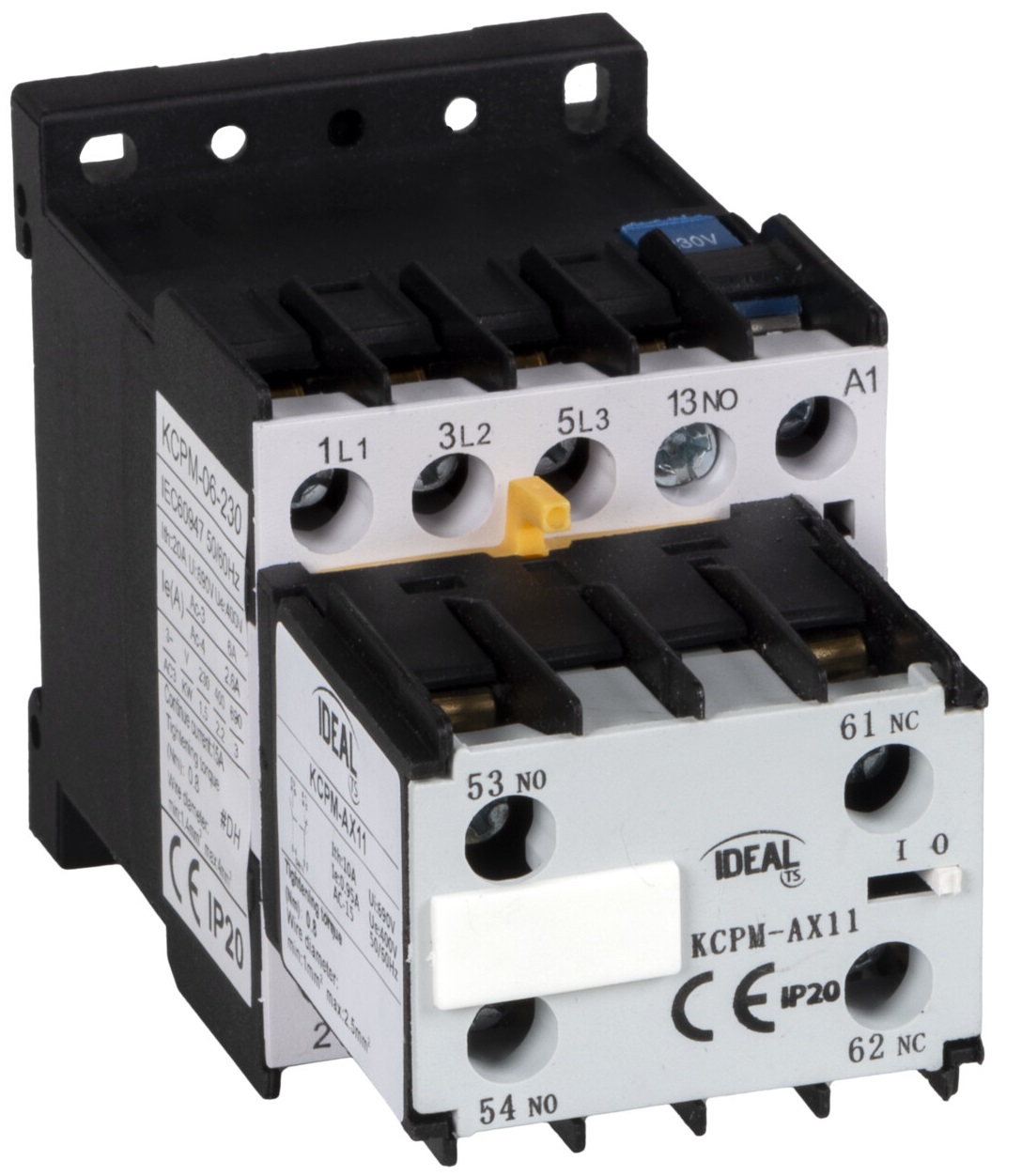Il blocco di contatti ausiliari KCPM è un accessorio progettato per l’espansione funzionale dei contattori di potenza mini, consentendo la gestione di circuiti di comando, segnalazione e interblocco in applicazioni industriali e civili. Il dispositivo integra quattro contatti ausiliari, configurati con 2 contatti normalmente aperti (NO) e 2 contatti normalmente chiusi (NC), garantendo flessibilità operativa e affidabilità nel controllo dei sistemi elettrici.