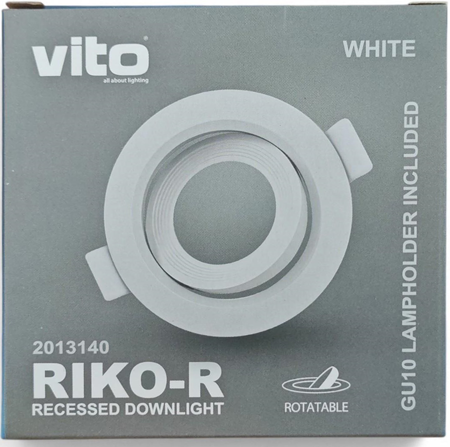 Portafaretto da incasso tondo progettato per lampadine GU10, ideale per creare punti luce discreti e moderni in ambienti interni. Il modello RIKO-R offre una struttura compatta con finitura bianca, perfetta per integrarsi in controsoffitti in cartongesso o pannelli tecnici.