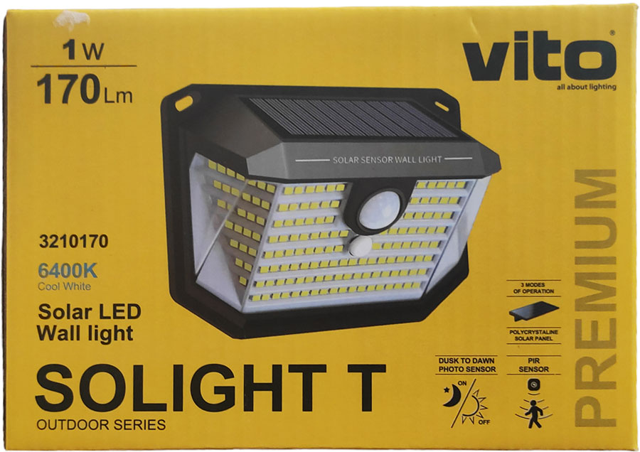I PROIETTORI SOLARI A LED serie SOLIGHT con corpo in ABS e diffusore in PMMA presentano prestazioni di illuminazione di 170Lm e una lunga durata di 30000 ore. Questo modello da 1 W include LED da 6400 K (BIANCO FREDDO) con un angolo di illuminazione di 120° come flessibilità di illuminazione desiderata.