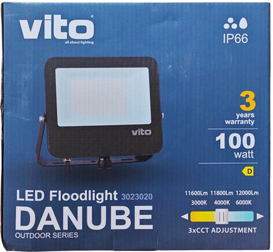 Illumina i tuoi spazi con il proiettore LED SMD VITO Danube da 100W ad alte prestazioni, progettato per garantire efficienza, durata e flessibilità. Questo potente proiettore è dotato di 3 temperature di colore selezionabili (3000K / 4000K / 6000K), che consentono di personalizzare l'atmosfera in base a qualsiasi applicazione, dagli ambienti residenziali più caldi agli spazi commerciali più freschi e luminosi.
