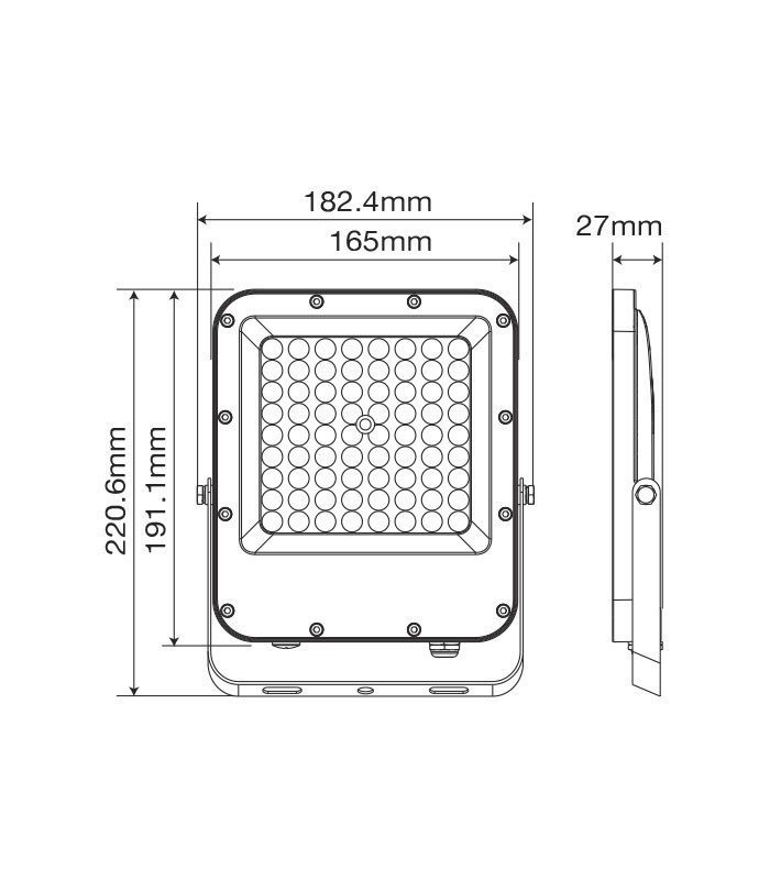 - Dimensioni: 191 × 165 × 27 mm