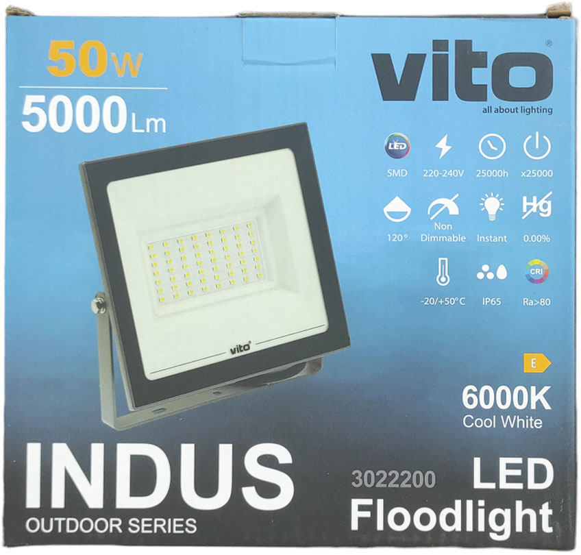 Questo modello da 50 W include LED da 6000 K (BIANCO FREDDO) con un angolo di illuminazione 120°.