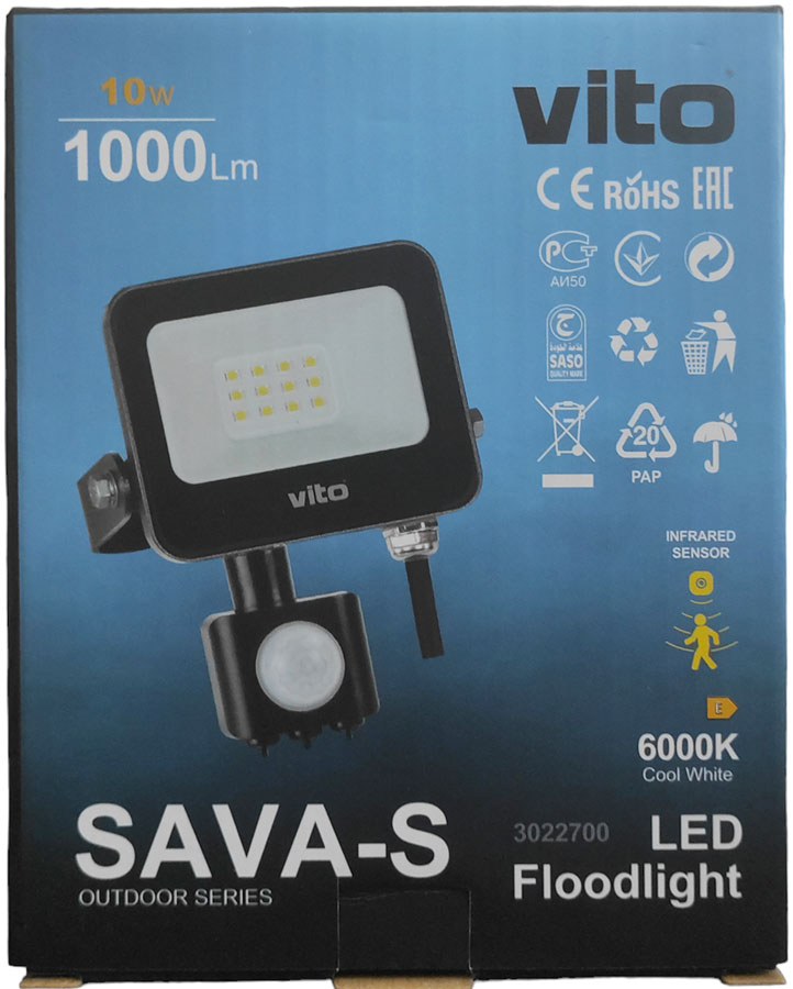 SAVA S prima generazione, è una famiglia economica di proiettori impermeabili, IP65, dotati di LED SMD e sensore PIR.
