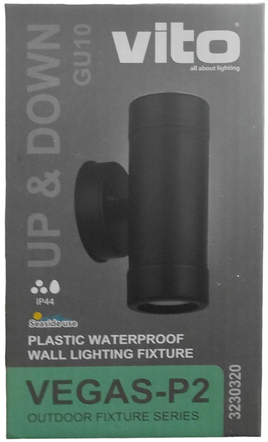 Le APPLIQUE della serie VEGAS con corpo in PP e diffusore in PC offrono una lunga durata. Questo modello include 2 attacchi GU10 per lampadine.
