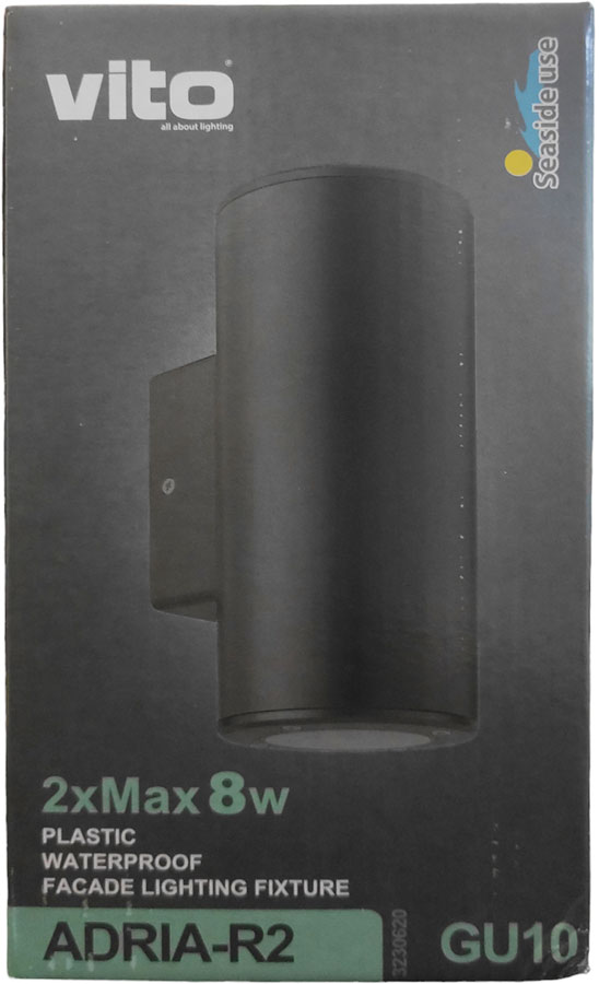 Lampada applique da esterno nera IP54 2xGU10 Φ76x186x99mm