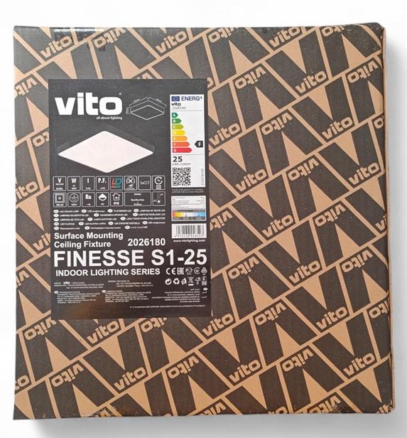 Plafoniera LED quadrata della serie FINESSE progettata per illuminazione interna moderna e uniforme. Il modello S1-25 integra tecnologia backlight con selettore DIP per scegliere la temperatura colore direttamente in fase di installazione, offrendo massima flessibilità luminosa.