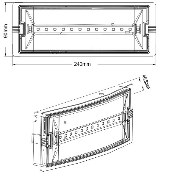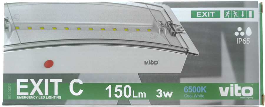 EXIT C è un apparecchio di emergenza ricaricabile dotato di LED SMD. Può essere utilizzato per il montaggio in superficie. È impermeabile, IP65, il che significa che può essere utilizzato all'esterno. Facile apertura del diffusore con 2 pulsanti a scomparsa. Batteria: LiFePO4 3,2 V 600 mAh. Ricarica CA. Funzionamento CC. Tempo di ricarica: 6-8 ore, tempo di scarica: 3 ore. Classe II. Alloggiamento in ABS, diffusore in PC. Exit e altri adesivi sono inclusi.