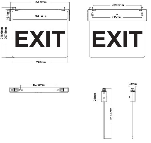 EXIT 10 è un apparecchio di emergenza ricaricabile dotato di LED SMD. 2 in 1, può essere utilizzato come sospensione o montato in superficie. Batteria: Litio 14500 3,7 V 500 mAh. Ricarica CA. Funzionamento CC. Tempo di ricarica: 12-15 ore, tempo di scarica: 10 ore. Classe II. Alloggiamento in ABS, diffusore in PS. Exit e altri adesivi sono inclusi. Spina UE con cavo da 40 cm inclusa nella confezione.