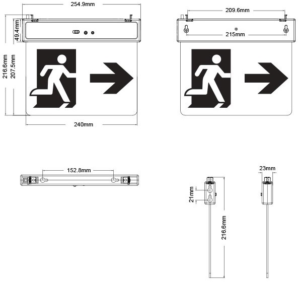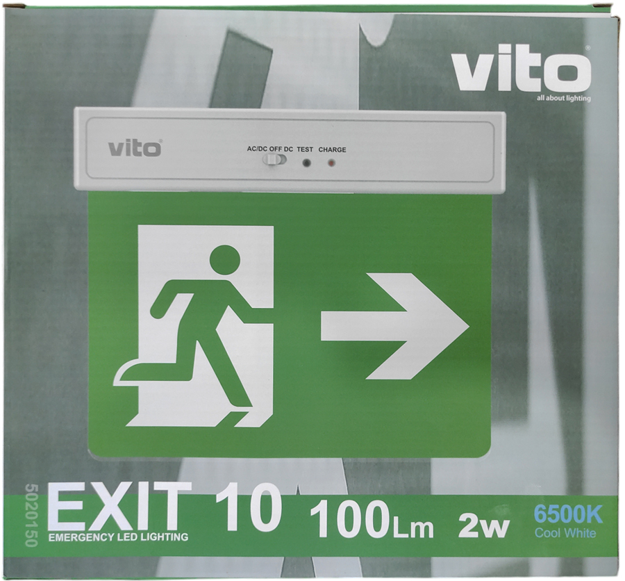 EXIT 10 è un apparecchio di emergenza ricaricabile dotato di LED SMD. 2 in 1, può essere utilizzato come sospensione o montato in superficie. Batteria: Litio 14500 3,7 V 500 mAh. Ricarica CA. Funzionamento CC. Tempo di ricarica: 12-15 ore, tempo di scarica: 10 ore. Classe II. Alloggiamento in ABS, diffusore in PS. Exit e altri adesivi sono inclusi. Spina UE con cavo da 40 cm inclusa nella confezione.