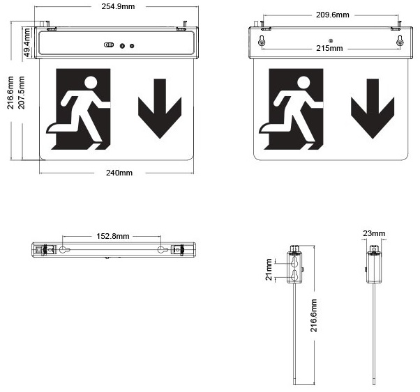 Lampada LED uscita d'emergenza freccia verso il basso 2W 6500k luce fredda