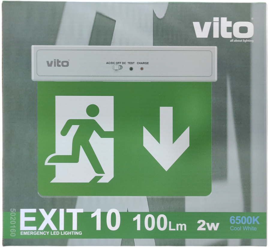 EXIT 10 è un apparecchio di emergenza ricaricabile dotato di LED SMD. 2 in 1, può essere utilizzato come sospensione o montato in superficie. Batteria: Litio 14500 3,7 V 500 mAh. Ricarica CA. Funzionamento CC. Tempo di ricarica: 12-15 ore, tempo di scarica: 10 ore. Classe II. Alloggiamento in ABS, diffusore in PS. Exit e altri adesivi sono inclusi. Spina UE con cavo da 40 cm inclusa nella confezione.