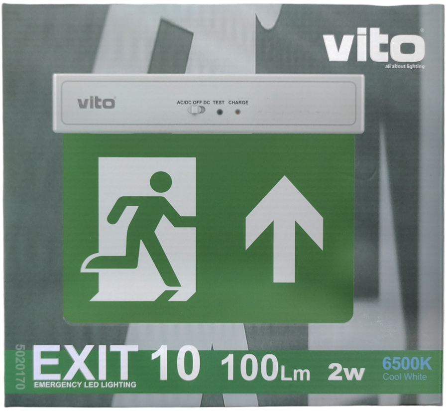 EXIT 10 è un apparecchio di emergenza ricaricabile dotato di LED SMD. 2 in 1, può essere utilizzato come sospensione o montato in superficie. Batteria: Litio 14500 3,7 V 500 mAh. Ricarica CA. Funzionamento CC. Tempo di ricarica: 12-15 ore, tempo di scarica: 10 ore. Classe II. Alloggiamento in ABS, diffusore in PS. Exit e altri adesivi sono inclusi. Spina UE con cavo da 40 cm inclusa nella confezione.