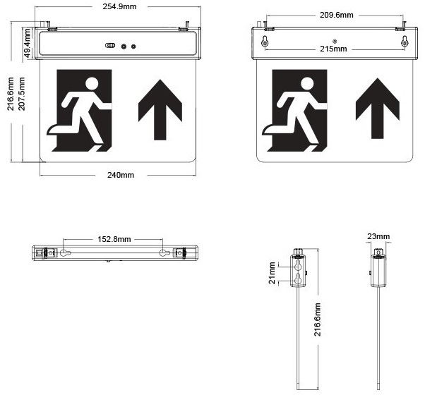 Lampada LED uscita d'emergenza freccia verso l'alto 2W 6500k luce fredda