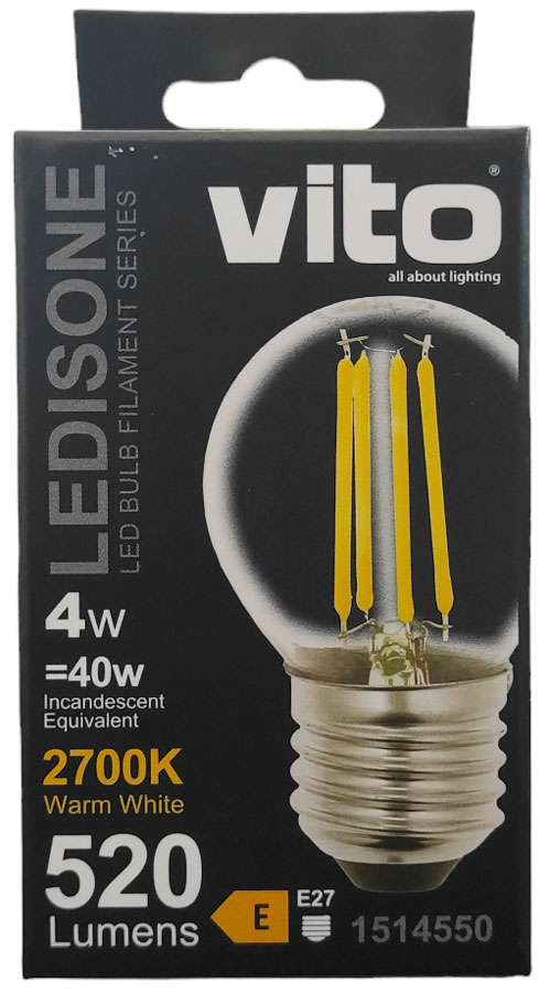 Questo modello da 4 W include LED da 2.700 K (BIANCO CALDO) e un attacco E27 con un angolo di illuminazione di 360°.