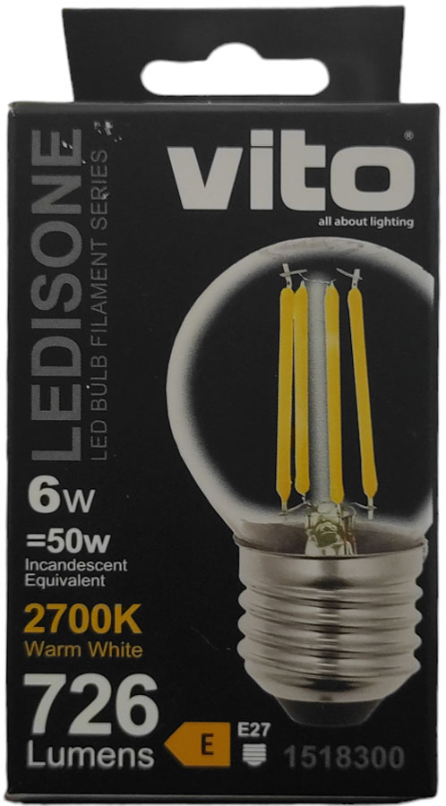 Le LAMPADINE A FILAMENTO LED serie LEDISONE-2 con corpo in vetro e alluminio presentano una prestazione di illuminazione di 724Lm e una durata di 25.000 ore.