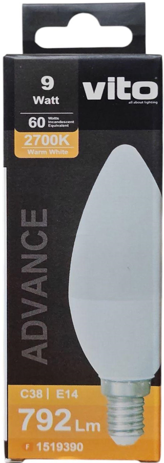 Lampadina LED C38 9W E14 792lm luce calda 2700k