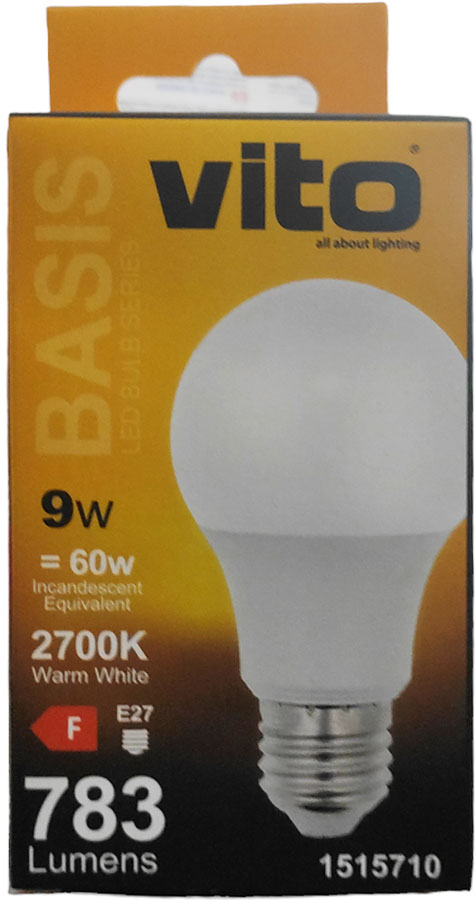 Le LAMPADINE LED serie BASIS con corpo in plastica e alluminio e diffusore in policarbonato offrono prestazioni di illuminazione di 783 Lm e una durata di 15.000 ore. Questo modello da 9 W include LED da 2700 K (BIANCO CALDO) e attacco E27 con un angolo di illuminazione di 270°.