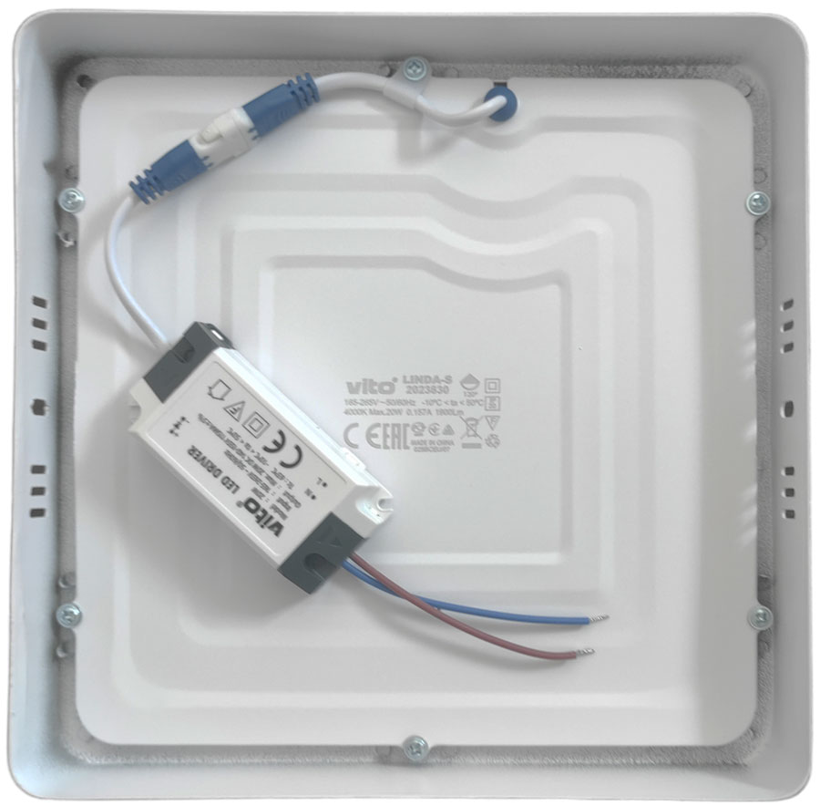 L'ILLUMINAZIONE DA SOFFITTO A LED serie LINDA con corpo in alluminio e diffusore in PP offre prestazioni di illuminazione di 2000 Lm e una durata di 50000 ore. Questo modello da 20 W include LED da 6000 K (BIANCO FREDD) con un angolo di illuminazione di 120°.