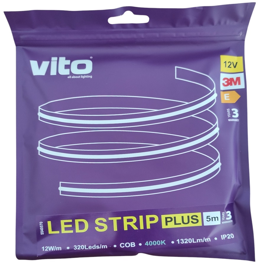 Striscia LED 12V 320xCOB 12W IP20 luce naturale 4000K 5m