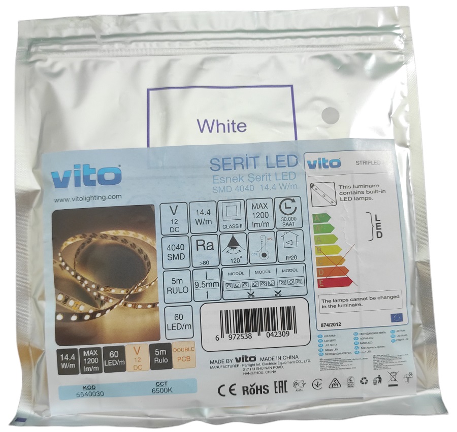 Striscia LED 14,4W/m 1200lm luce fredda 6500K 12V IP20 5m Vito