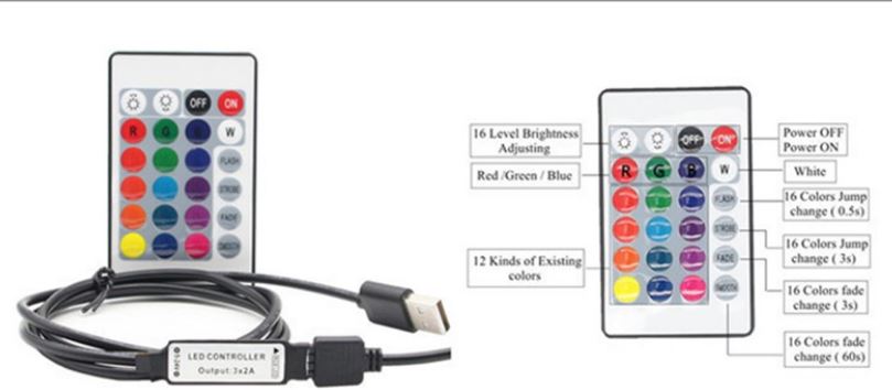 Striscia LED RGB 2m IP65 cavo di alimentazione USB con telecomando