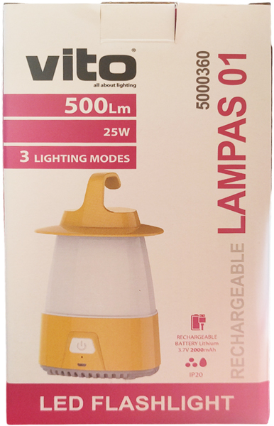 - 3 funzioni: Alta (500 Lm) / Media (200 Lm) / Bassa (50 Lm).