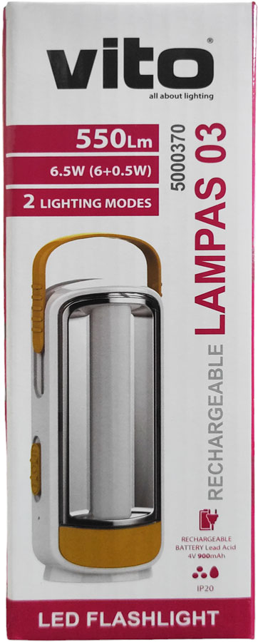 L'ILLUMINAZIONE RICARICABILE della serie LAMPAS con corpo in ABS presenta una lunga durata. Questo modello include LED da 6000K (BIANCO FREDDO).