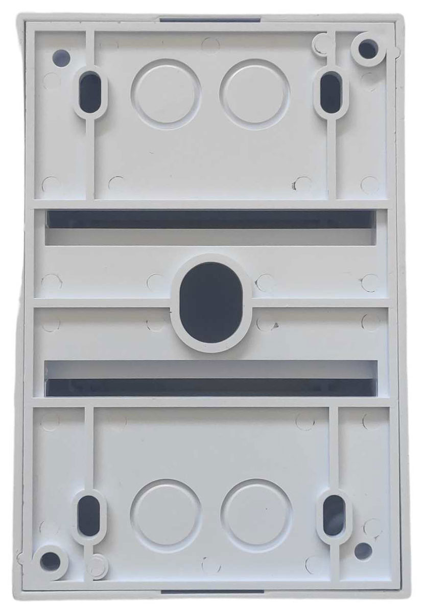 Scatola modulare per ospitare quadri elettrici ed elementi elettrici (differenziali, magnetotermici ...), di 4 moduli, montaggio su superficie o parete. Tipo monoblocco senza porta. Realizzato in materiale plastico, fornisce una classe di protezione II e un grado di protezione IP20.