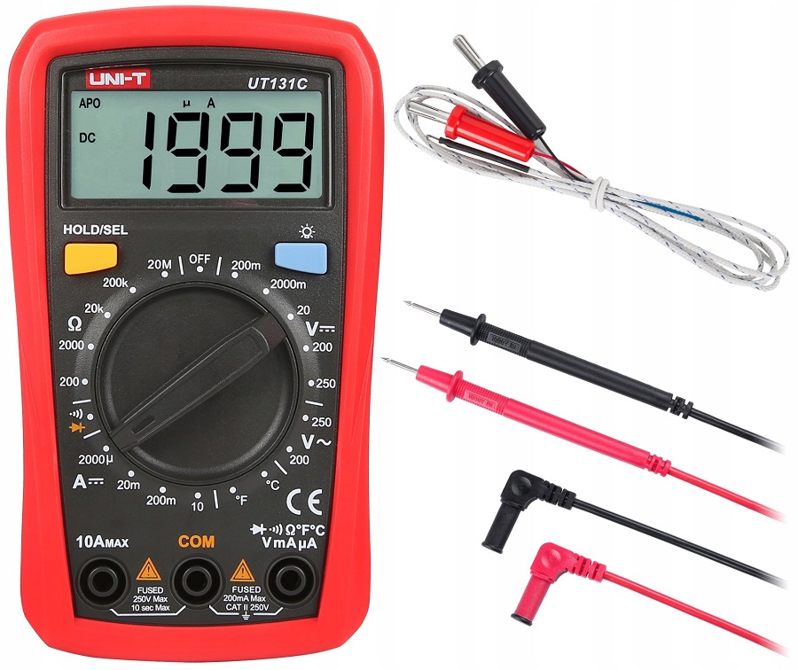 Multimetro digitale con puntali e sonda di temperatura 250V 20MOhm UT131C UNI-T