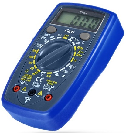 Il multimetro GETI GM33B può essere utilizzato per misurare un'ampia gamma di grandezze elettriche come: tensione (DCV e ACV), corrente (DCA), resistenza, capacità e molte altre.