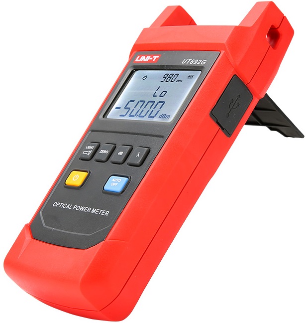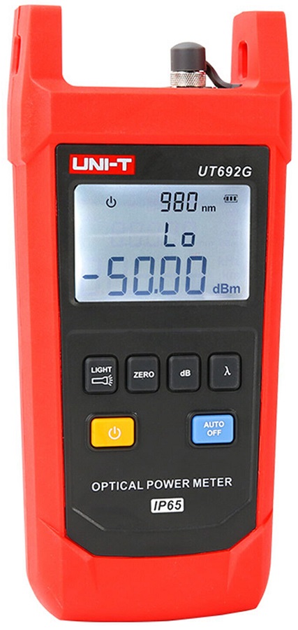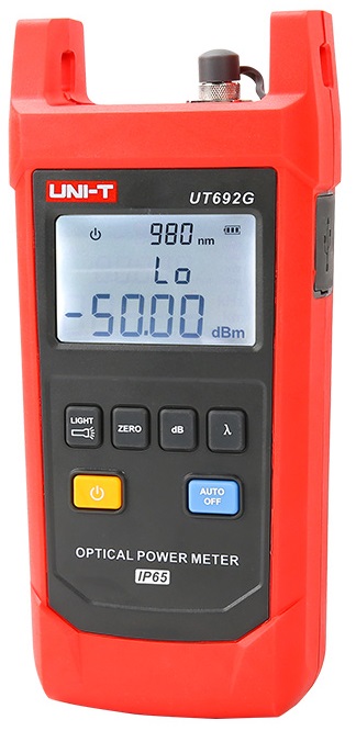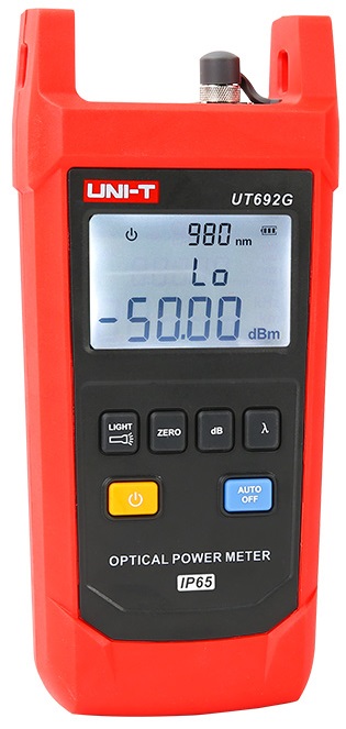 La serie UT692 è progettata per essere durevole, i misuratori possono resistere a cadute da 2 m e hanno un grado di resistenza alla polvere/acqua IP65. Inoltre, le altre funzionalità di UT692 includono display retroilluminato, torcia elettrica, spegnimento automatico, memorizzazione/richiamo della lunghezza d'onda, calibrazione utente e intervallo di test della potenza ottica ultra ampio.